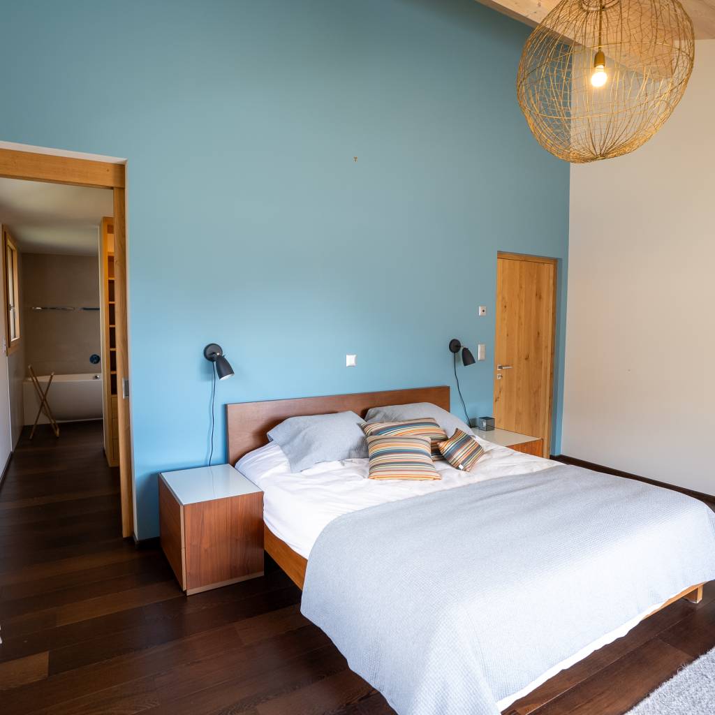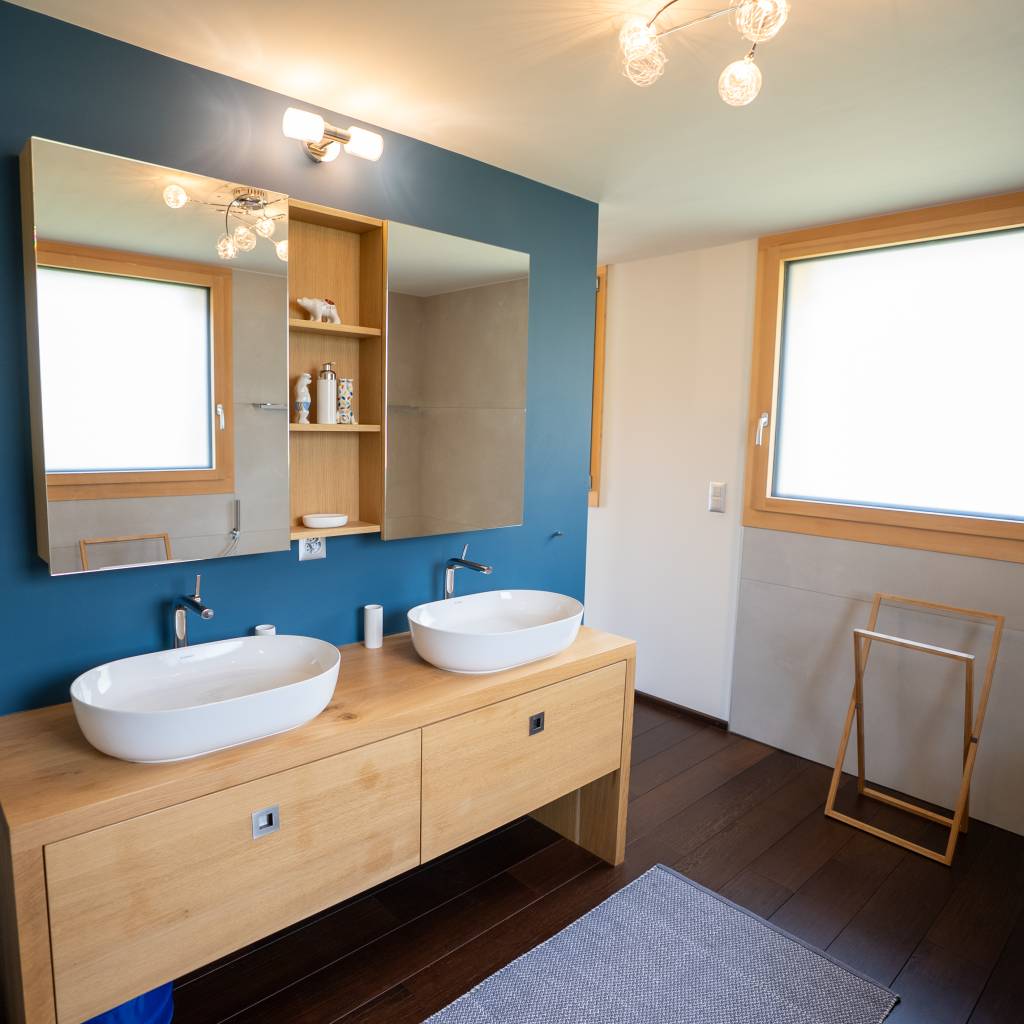 Vue panoramique sur les Alpes, grand terrain de 1’771 m², garage double, finitions haut de gamme et conception écoresponsable (panneaux solaires, géothermie). Luxe, confort et nature réunis pour un cadre de vie unique.